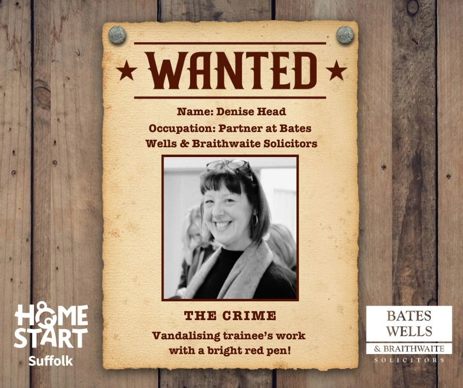 On Friday 13th March, Denise will be arrested for the very serious offence of… vandalising a trainee’s work with a bright red pen. Guilty as charged. The only way out? Raising enough bail through donations.